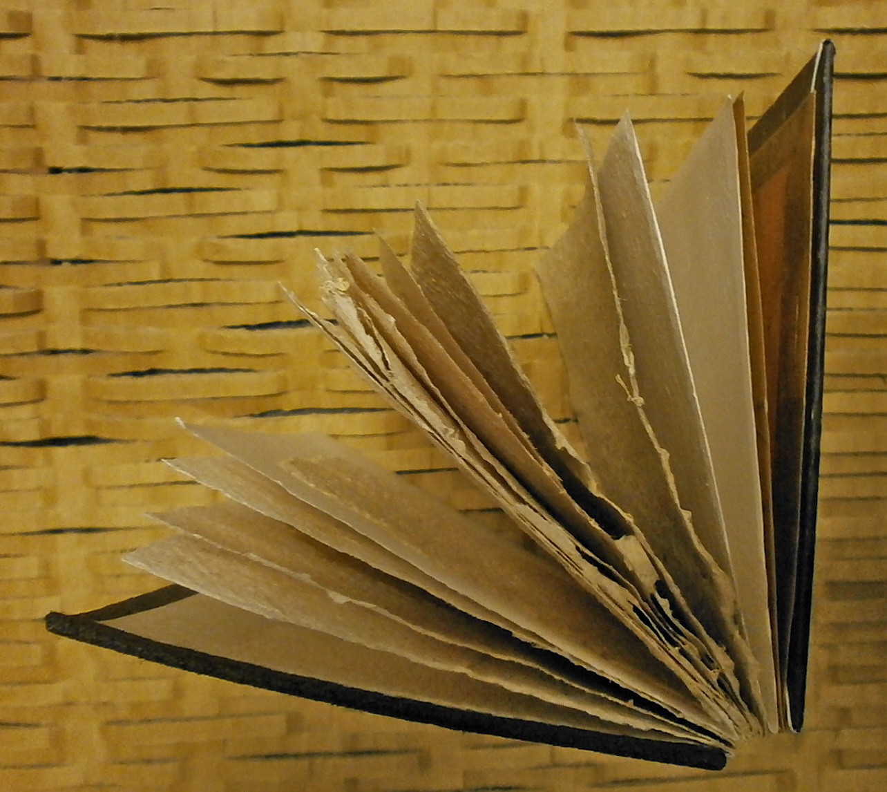 « Professeur de Lettres à l'École Estienne, Pascale COMBET-NATORP a participé pendant sept années à la création de livres d'artiste. Les étudiants en diplôme des métiers d'art couronnaient leur formation en deux ans au Laboratoire d'Expérimentation Graphique. Son rôle était de proposer une oeuvre, en présenter son auteur et son contexte. Elle devait ensuite s'assurer de la pertinence et de la cohérence de leur projet avec le sens du texte. À ce titre, elle dispose donc de plusieurs collections, dont celle des années 2014-15, qui illustre le recueil de son ami Pierre Chappuis, poète de Suisse romande, édité chez Corti, L'invisible parole mais aussi de Joseph PONTHUS , à la ligne et d’Alain JÉGOU, PASSE OUEST suivi de Ikaria LO 686070 ». C’est ainsi que Pascale a eu l’idée de mettre à la disposition du public une partie de sa collection qui comprend une quarantaine de livres, afin de montrer l'incroyable différences des propositions plastiques illustrant des textes dont chaque étudiant s'était emparé pour concevoir et fabriquer un chef d'oeuvre en 30 exemplaires."